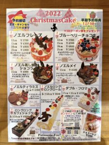 既に完売商品もありますが、クリスマスケーキの店頭、オンラインショップでの御予約期間は18日までですのでよろしくお願いします!!
