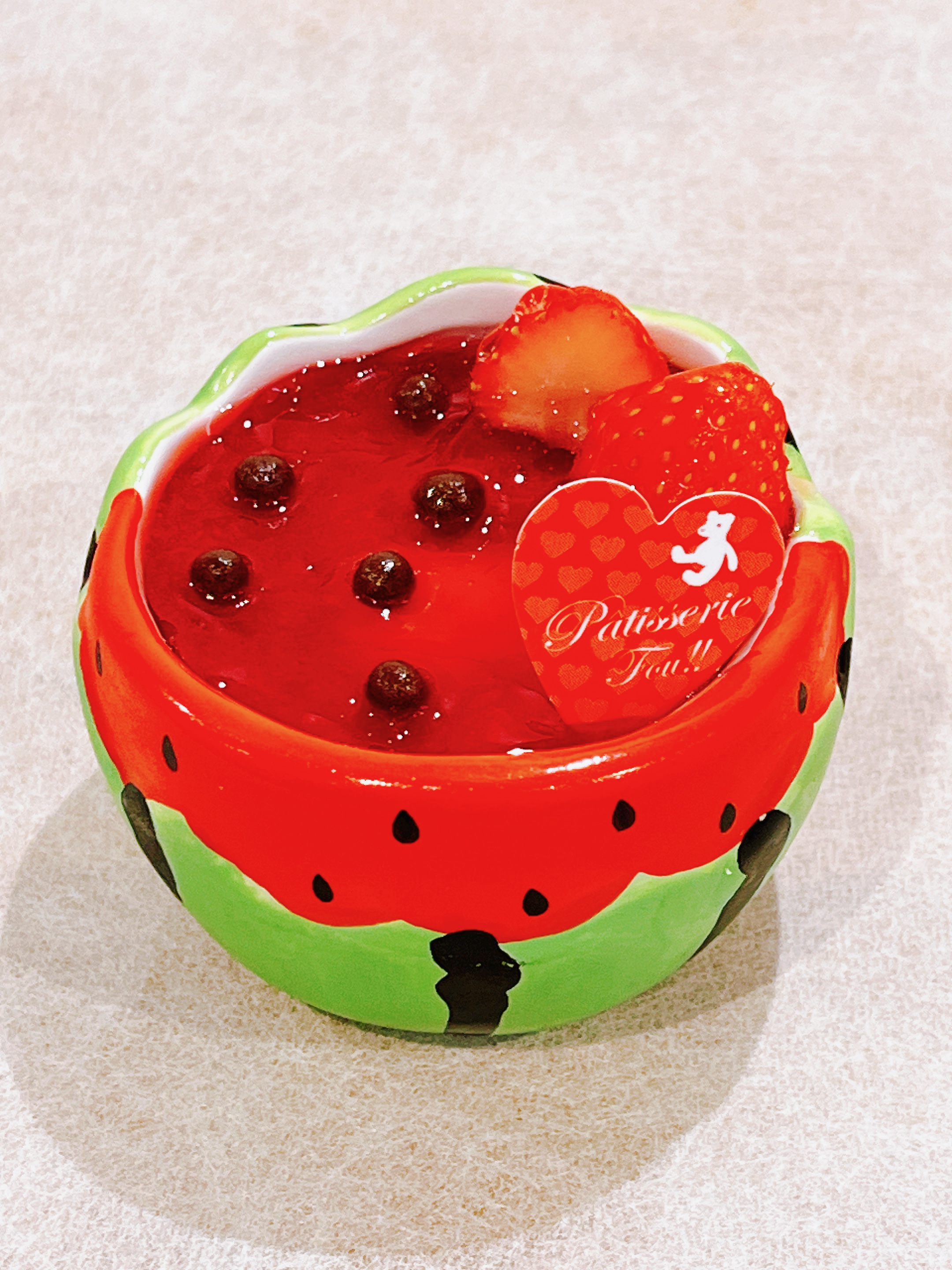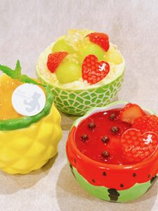 スイカ、パイナップル、メロンの陶器のカップで夏らしいスイーツを開始しております!!